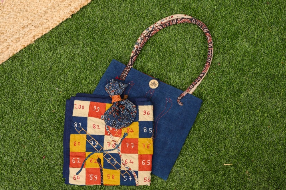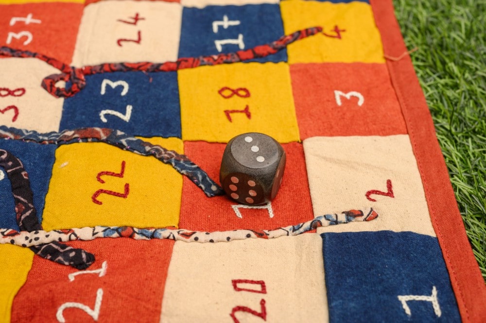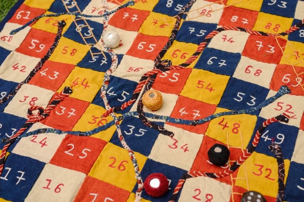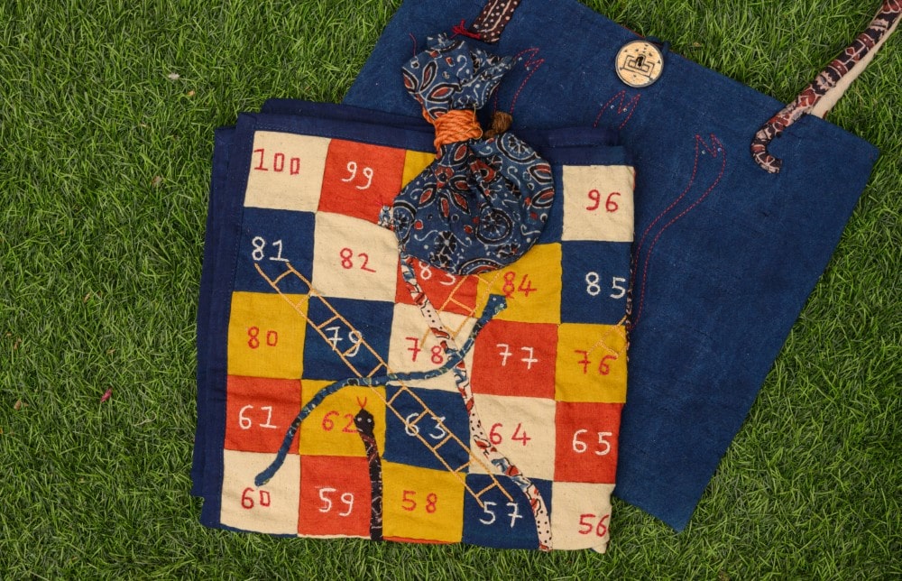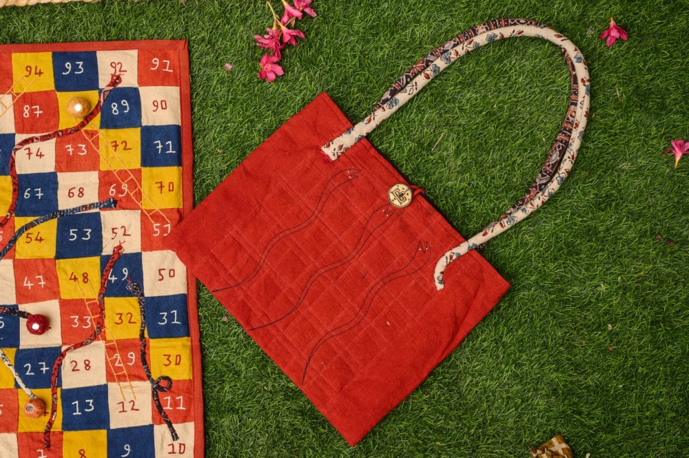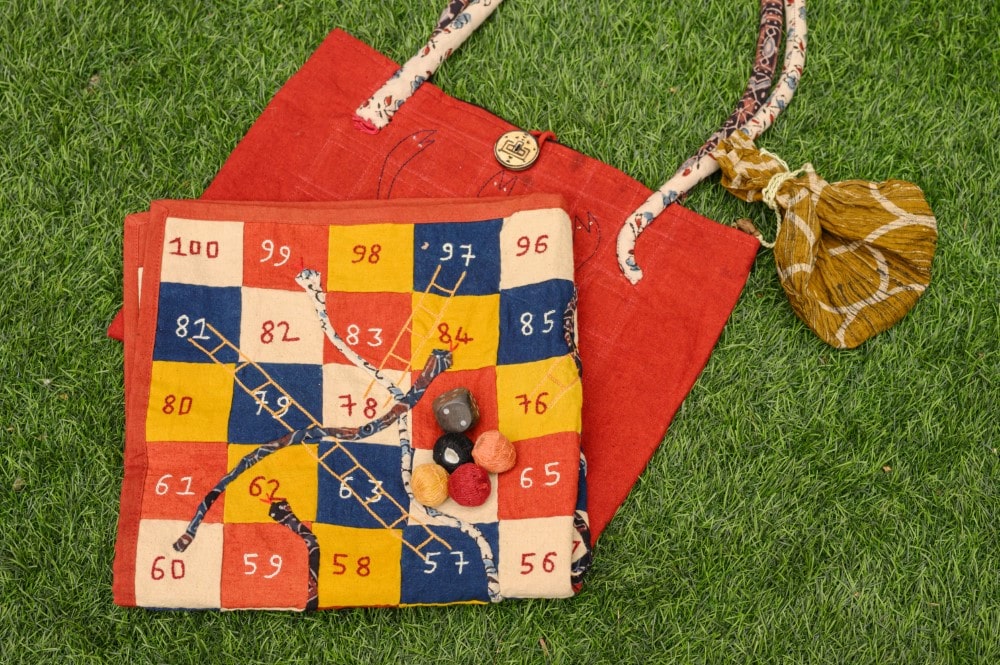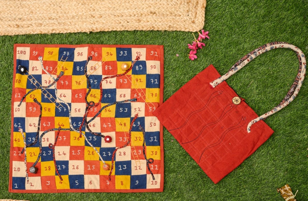 Rediscover the classic game in a whole new way with this charming Snakes & Ladders set, lovingly crafted by skilled senior women artisans of Kutch. Each square of the board is a testament to their expertise, adorned with intricate patchwork, appliqué, and delicate chain stitch, all done by hand.