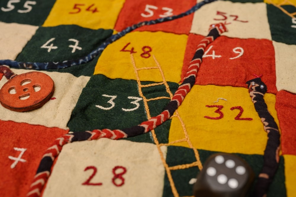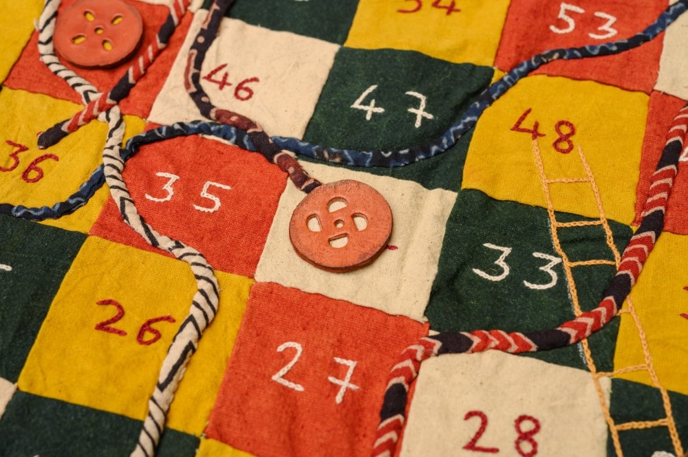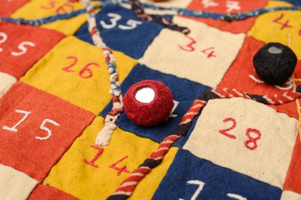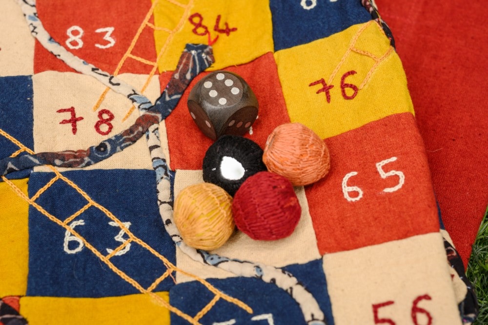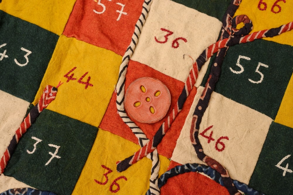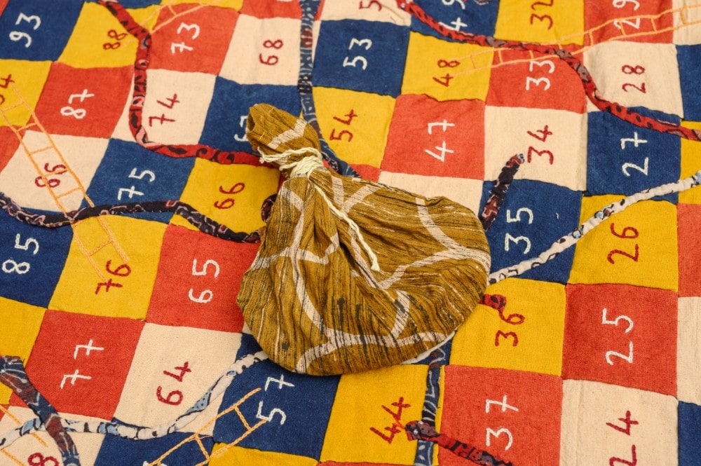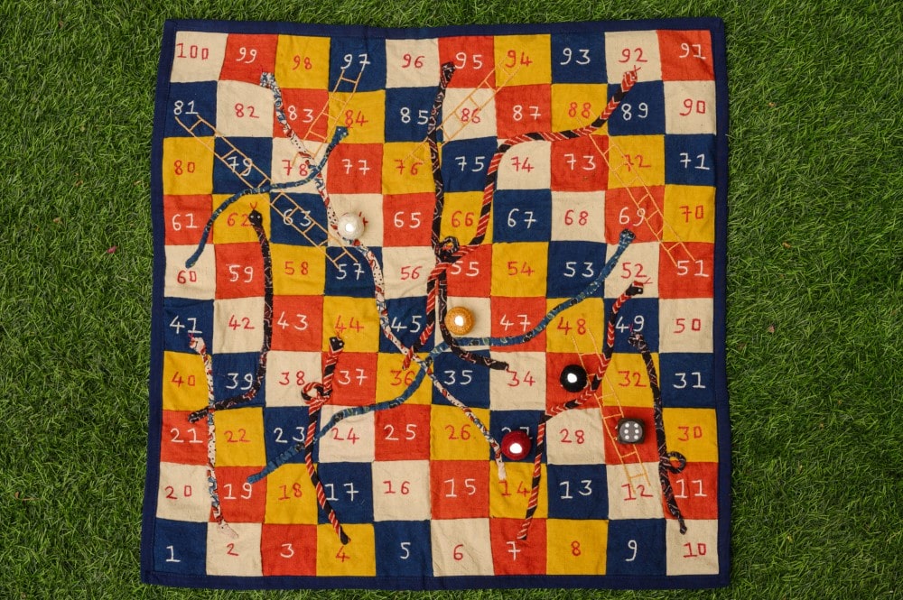 Rediscover the classic game in a whole new way with this charming Snakes & Ladders set, lovingly crafted by skilled senior women artisans of Kutch. Each square of the board is a testament to their expertise, adorned with intricate patchwork, appliqué, and delicate chain stitch, all done by hand.